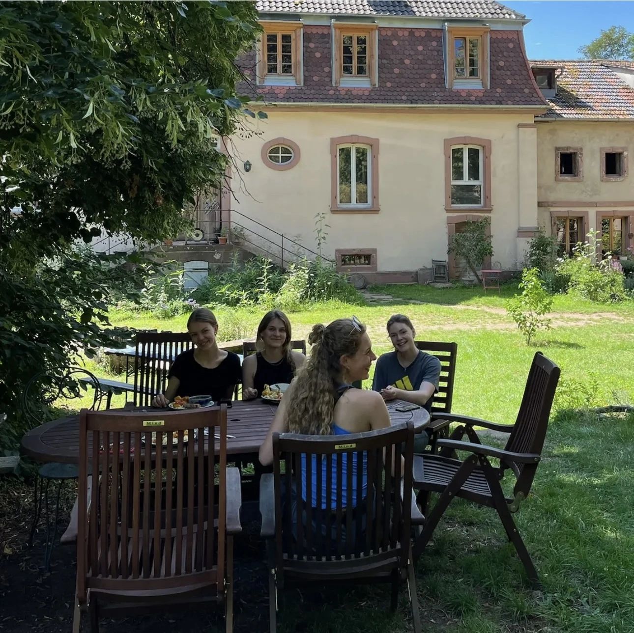 Im Anschluss reisten beide Studentinnen nach Frankreich, wo sie beim Workcamp des Internationalen Bauordens in Wissembourg mithalfen. Dort wurde ein Chalet unter ökologischen Gesichtspunkten renoviert: Fenster wurden erneuert, Wände verputzt, Böden saniert und Gärten gepflegt. Auch die Themen Permakultur und nachhaltiges Leben spielten eine wichtige Rolle – vom gemeinschaftlichen Kochen bis zur naturnahen Gartengestaltung.